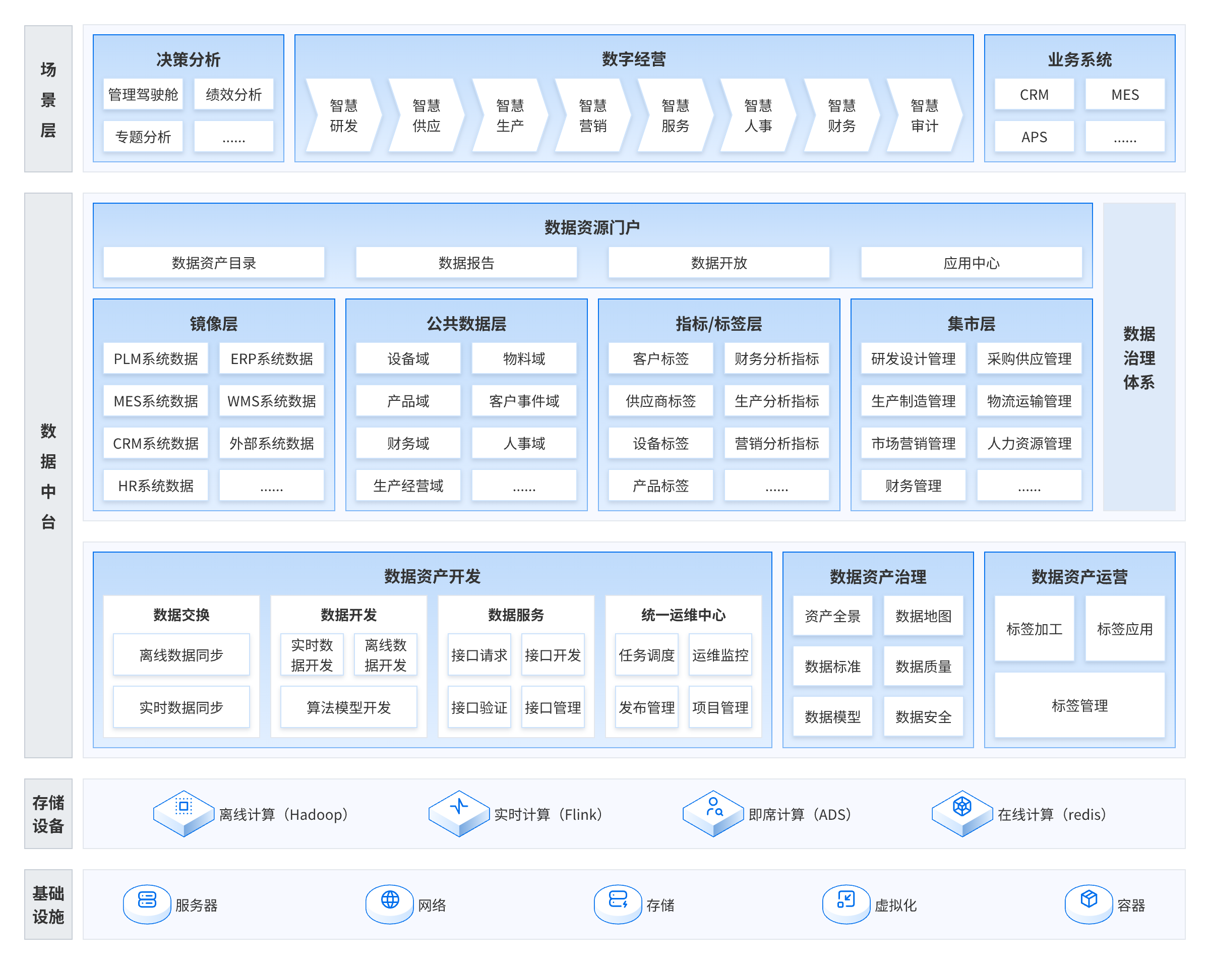 達(dá)普信數(shù)據(jù)中臺(tái)解決方案,通過構(gòu)建數(shù)據(jù)能力平臺(tái),實(shí)現(xiàn)數(shù)據(jù)資產(chǎn)體系,達(dá)到多場(chǎng)景下數(shù)據(jù)驅(qū)動(dòng)的目的和意義,數(shù)據(jù)中臺(tái)的構(gòu)成包括: