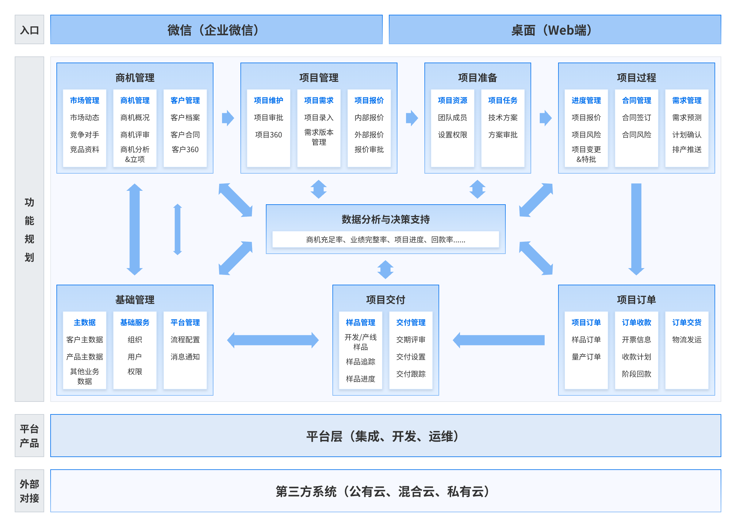 打通從銷售線索、商機、項目管理、方案設計、報價、交付、回款等業務環節,設計研發了儲能行業LTC平臺解決方案。